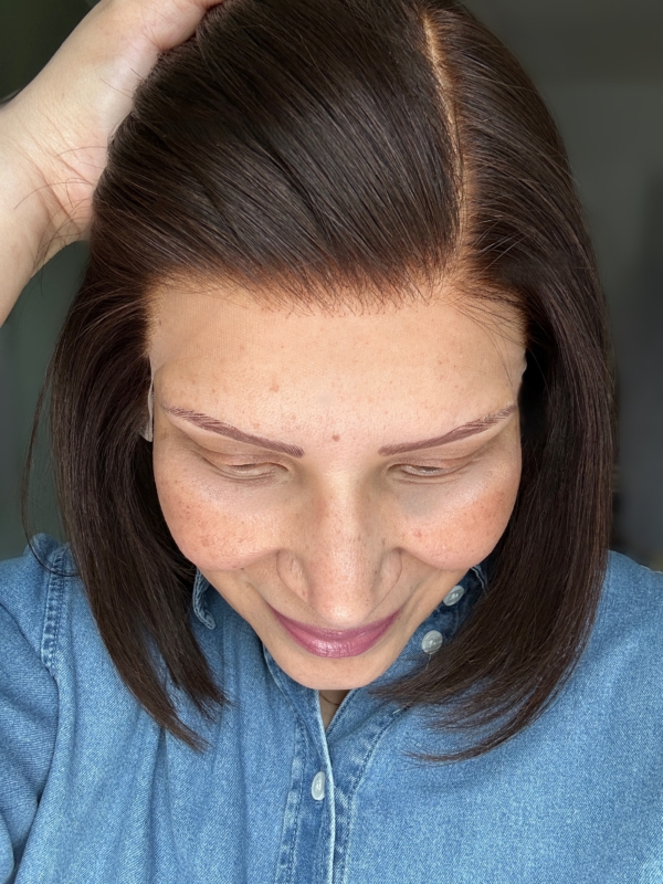 Photos are provided as a reference for the desired style. Due to the handcrafted nature of each unit and our custom coloring process, the final result of pre-ordered wigs may vary slightly. Additionally, colors may appear different in person depending on screen brightness and display settings.