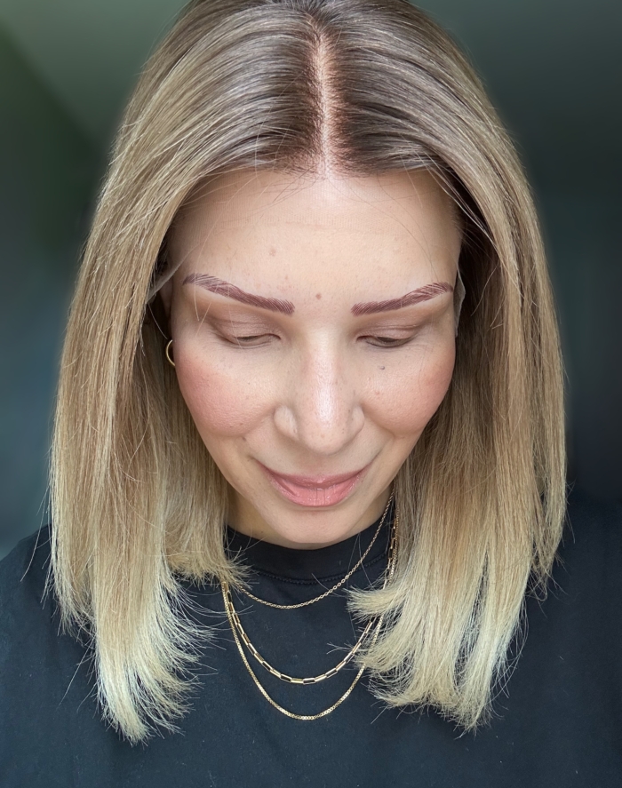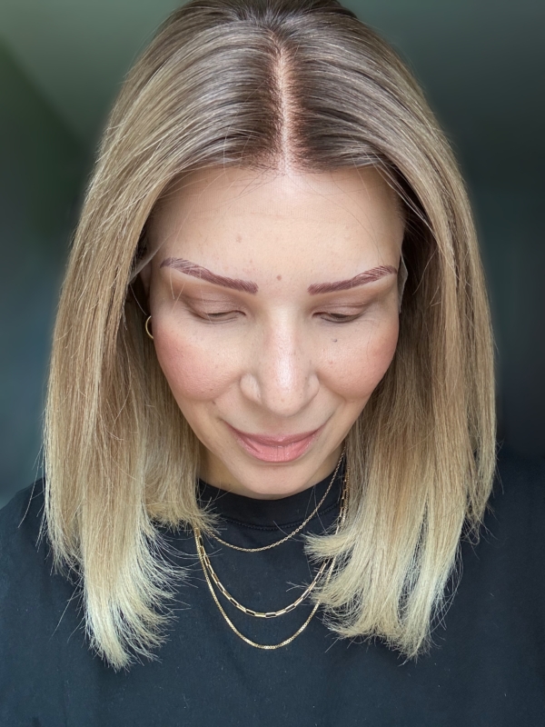 Photos are provided as a reference for the desired style. Due to the handcrafted nature of each unit and our custom coloring process, the final result of pre-ordered wigs may vary slightly. Additionally, colors may appear different in person depending on screen brightness and display settings.
